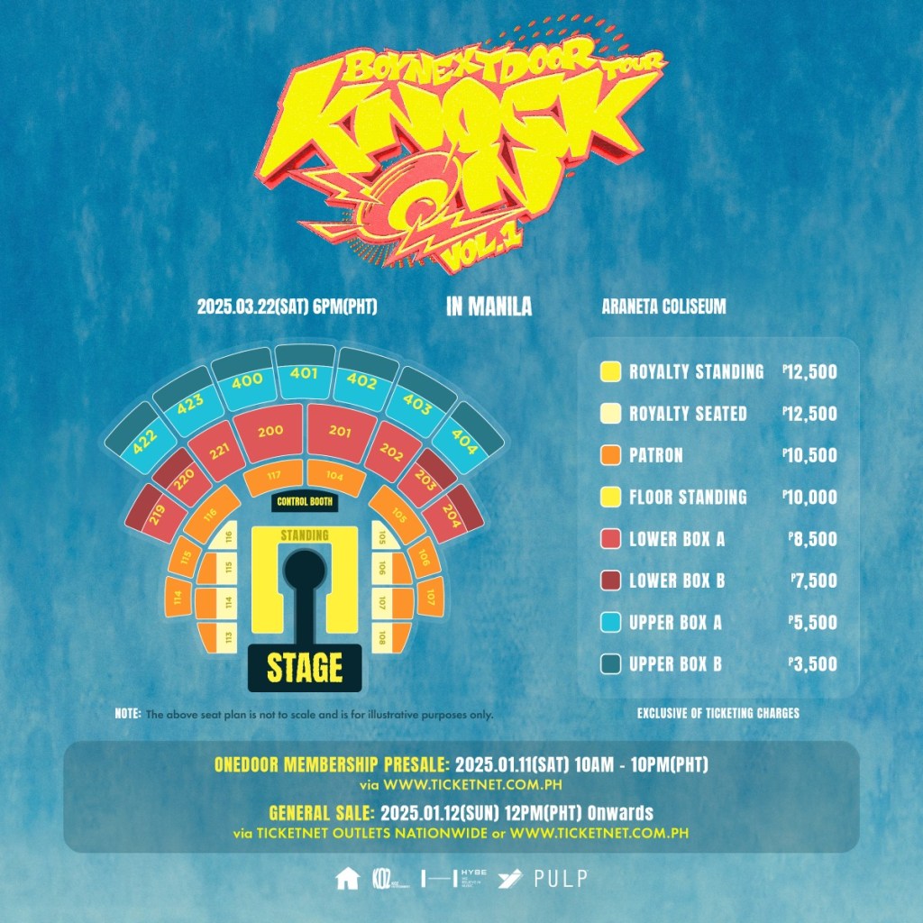 K-Pop group BOYNEXTDOOR is set to bring their KNOCK ON VOL.1 tour to the Araneta Coliseum on March 22, 2025. Ticket prices were announced via Pulp Live World’s official social media pages.