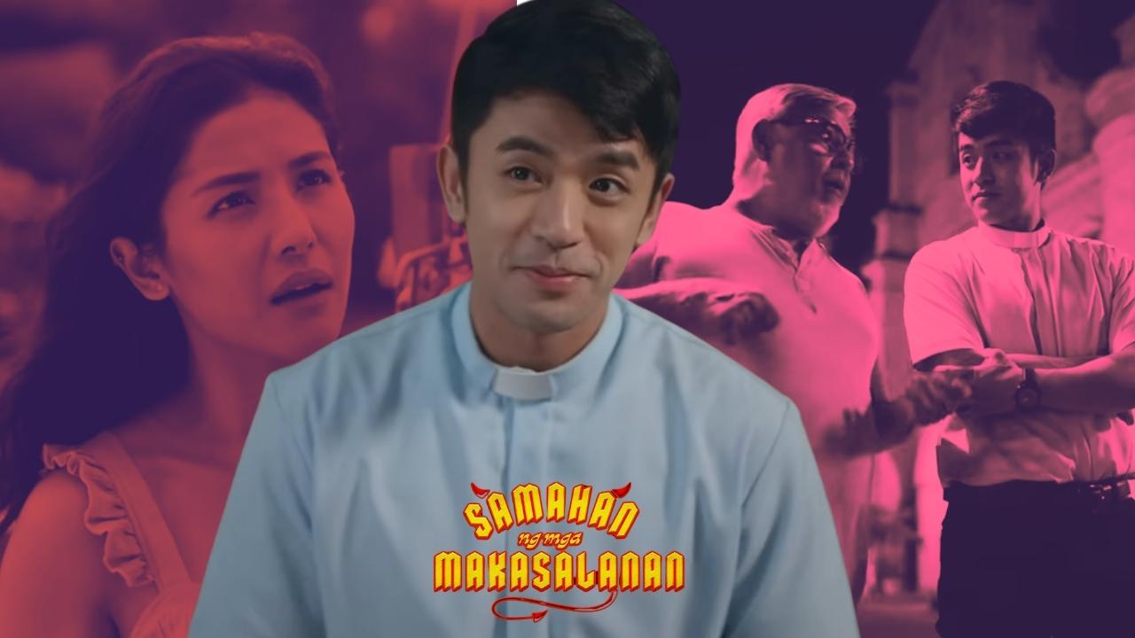 The movie tells the story of Reverend Sam (David), who was assigned to stay in the town of Sto. Kristo. The challenge for Sam comes when he finds himself in chaos because of its townspeople’s morally corrupt way of living. He then makes it a mission to lead them to the path of redemption by forming a group called “Samahan ng mga Makasalanan.”